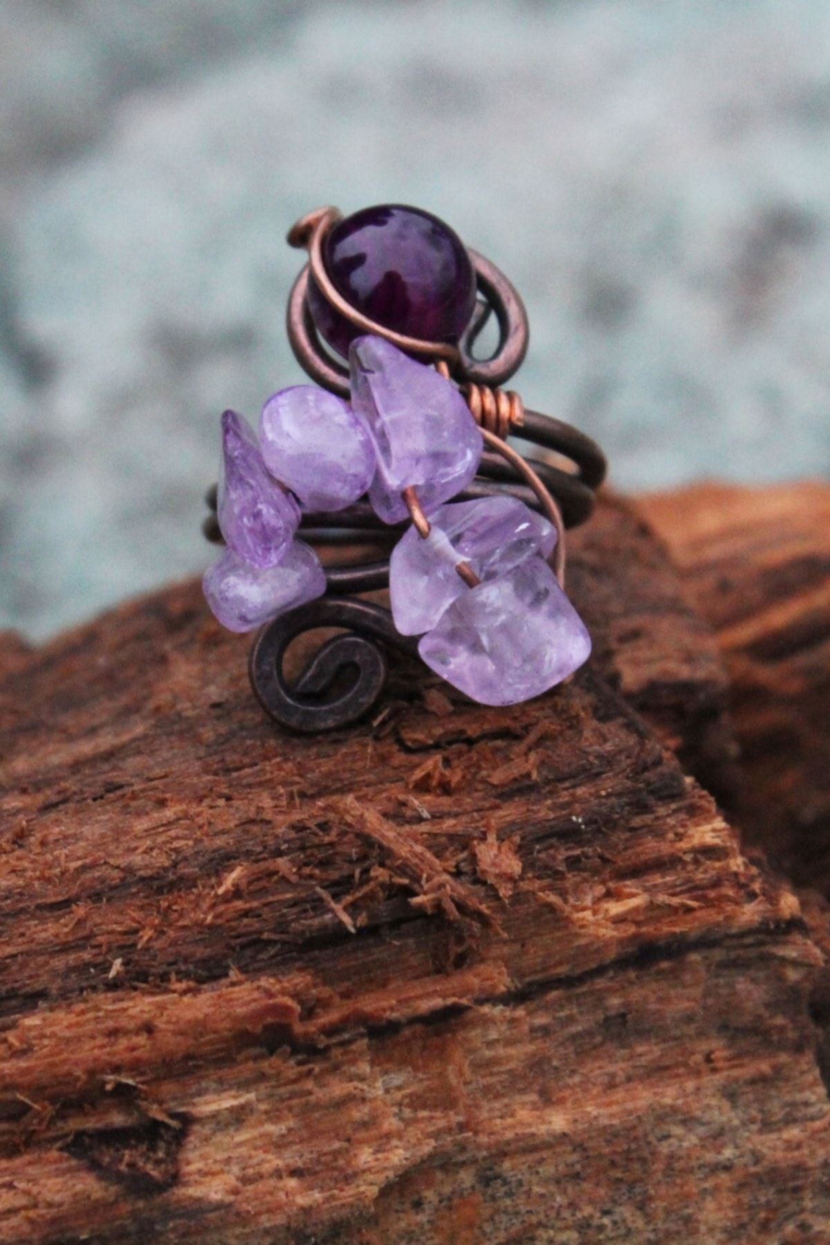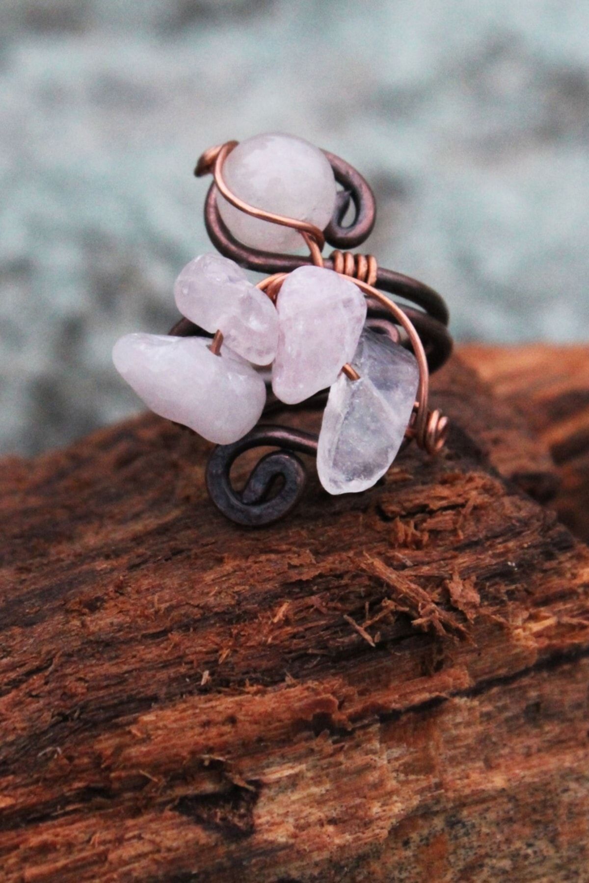 3’lü Ayarlanabilir Doğal Taş Yüzük Turkuaz- Ametist- Pembe Kuvars