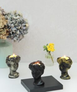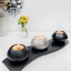 4 Parça Siyah Tabaklı Siyah & Gri Beton Mumluk