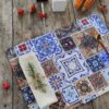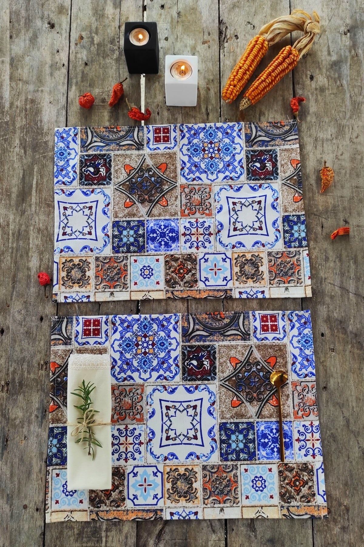 Çini Desenli Duck Keten Kumaş Amerikan Servis 8 Kişilik