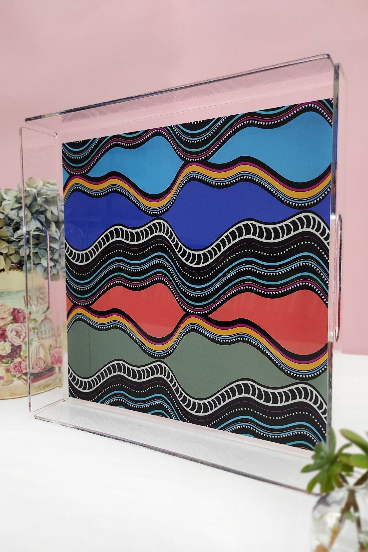 Colored Wave Pleksi Tepsi 32×32 Cm